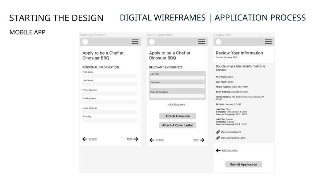 - 1/5 participants noticed there wasn’t a way to address gaps in work history for incarcerated individuals, a section was added to the application to allow applicants to explain gaps in work history.