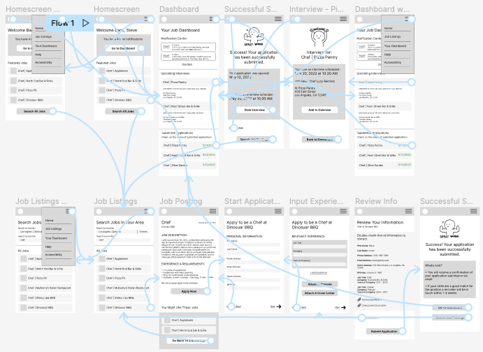 Main User Flow: “Design a multi-platform job search service to help people who are formerly incarcerated”