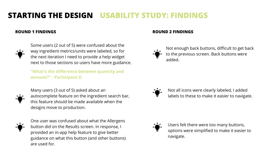 - Users were asked to calculate a fictional recipe on the low-fidelity prototype